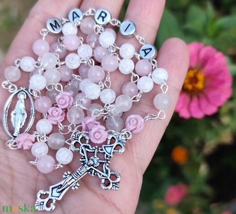 Neves rózsafüzér - rózsakvarc, roppantott hegyikristály