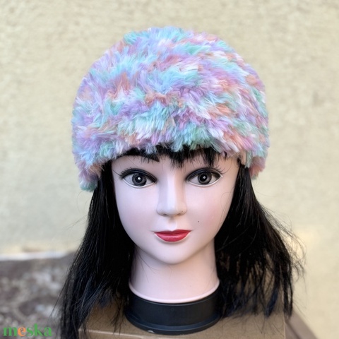 Szőrme hatású meleg kötött női sapka gyerek tini méret macaron színekben 5638407