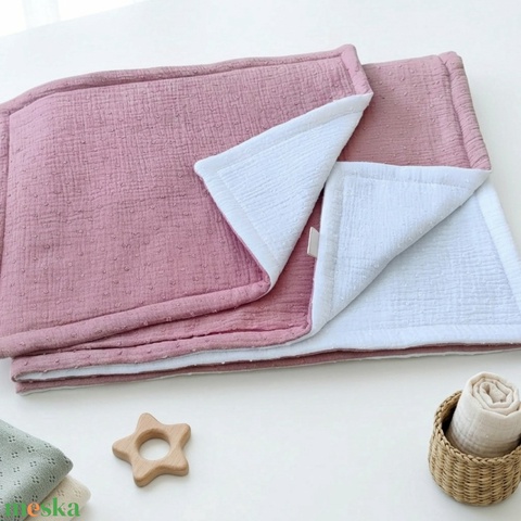 Baba ágynemű szett kiságyba – bélelt dupla géz (világos mályva-fehér)