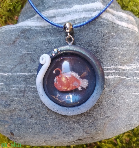 Lámpáshal medál, Horgászhal tavacska, Vízcsepp medál, Miniatűr lámpáshal, Egyedi figurás ékszer