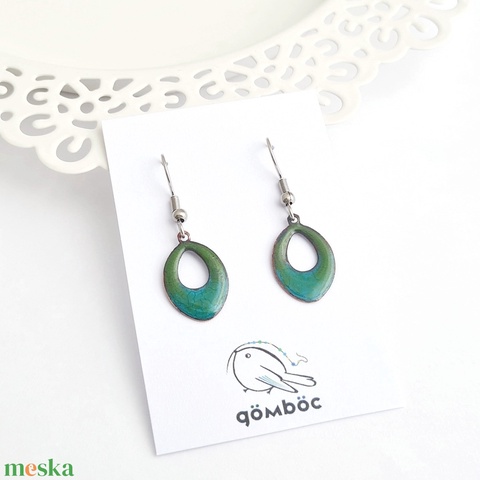 Tűzzománc zöld-türkiz lógós fülbevaló