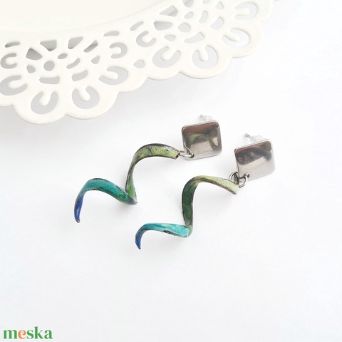 Tűzzománc zöld-kék nemesacél fülbevaló