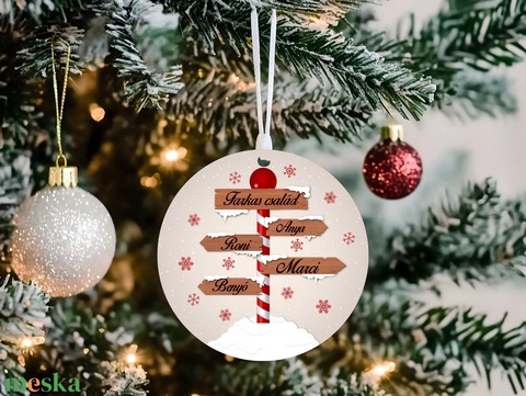 Személyre szabható „Családi iránytábla” karácsonyfadísz