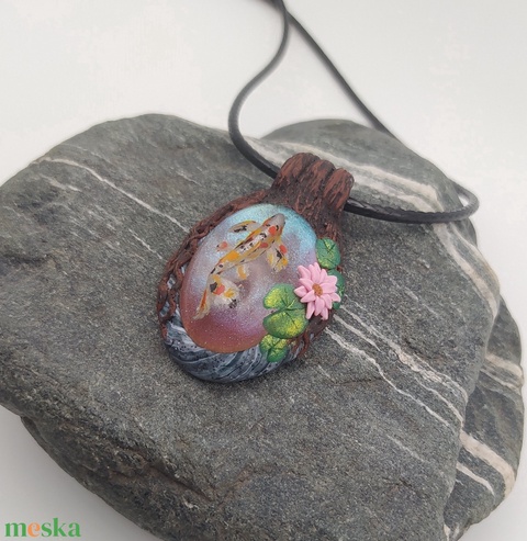 Koi medál, Koi tavacska, Vízcsepp medál, Miniatűr aranyhal, Egyedi figurás ékszer