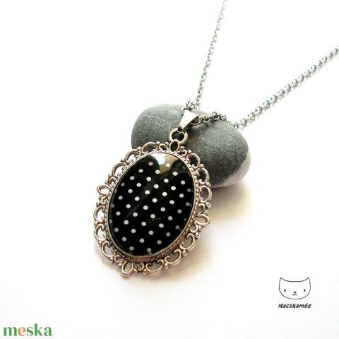 Simple black - Fekete-fehér pöttyös üveglencsés nyaklánc