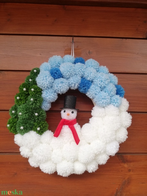 Téli pompon koszorú hóemberrel