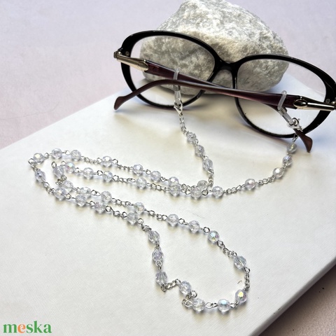 Elegáns csillogó szemüveglánc csiszolt színesen fénylő gyöngyökből