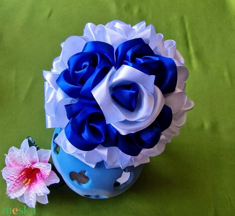 ESKÜVŐ MCS28 – Menyasszonyi csokor fehér és választható színű szatén rózsából