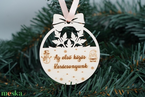 "Első közös karácsonyunk" gravírozott, fa karácsonyfadísz