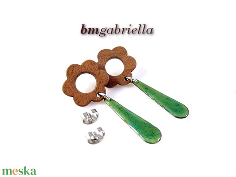 Virág lógós fülbevaló - orvosi fém bedugóval és stifttel - zöld