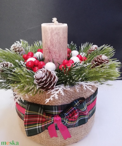 hullámpapír, lenvászon, mű zöldek, gyertya