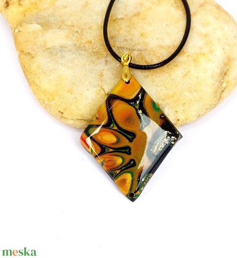 Őszi medál, virágos nyaklánc süthető gyurmából