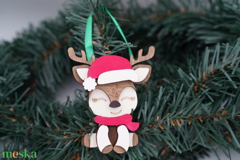 Őzikés 3D-s gravírozott, fa, karácsonyfadísz