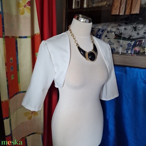 ESKÜVŐ BOL128 - Törtfehér menyasszonyi 3/4-es ujjú pamut szatén boleró