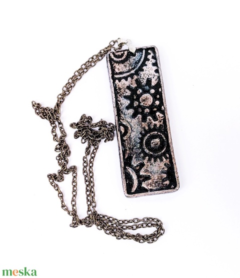Hosszúkás medál ékszergyurmából, steampunk nyaklánc