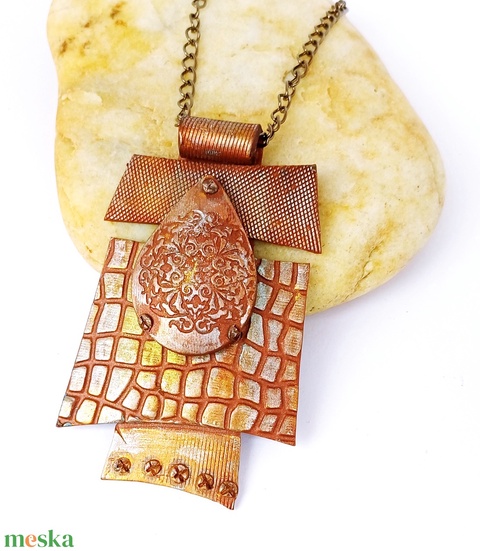 Textúrák játéka, barna egyedi nyaklánc nőknek