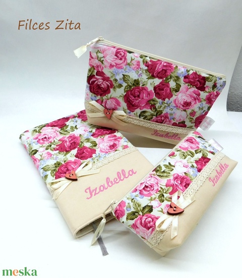 Rózsás ajándékszett napló / tolltartó / neszesszer
