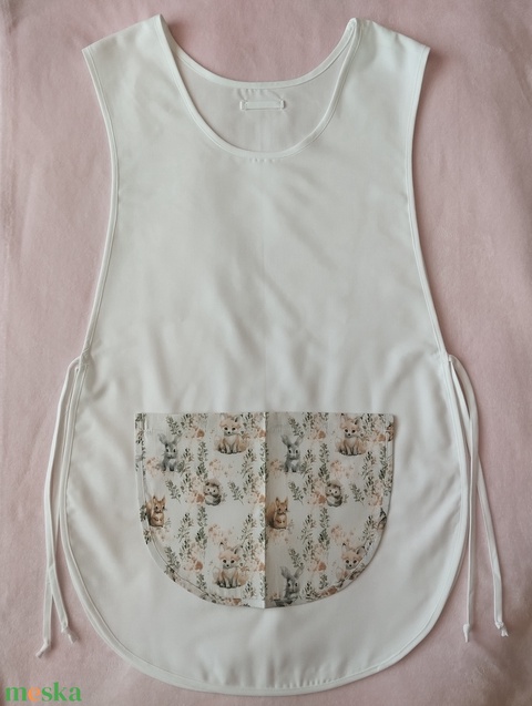 Női fehér lapköpeny,mintás zsebbel