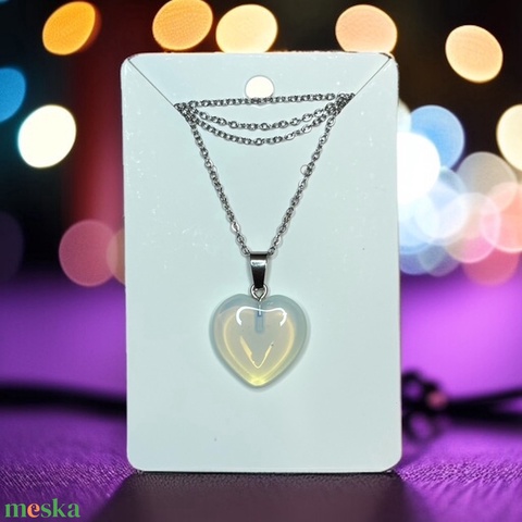 Opalit szív medál nemesacél kapcsos láncon