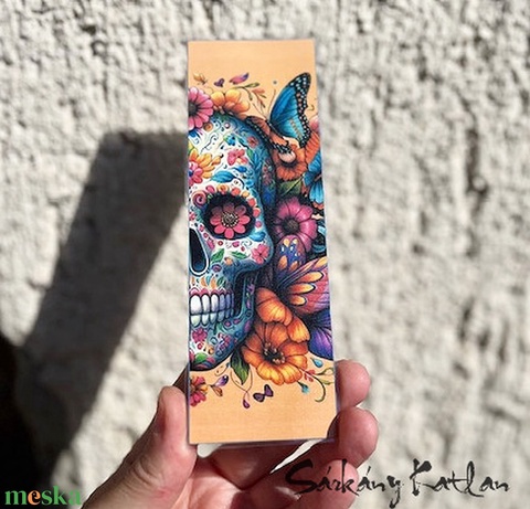 Koponya virágokkal, pillangókkal karton könyvjelző