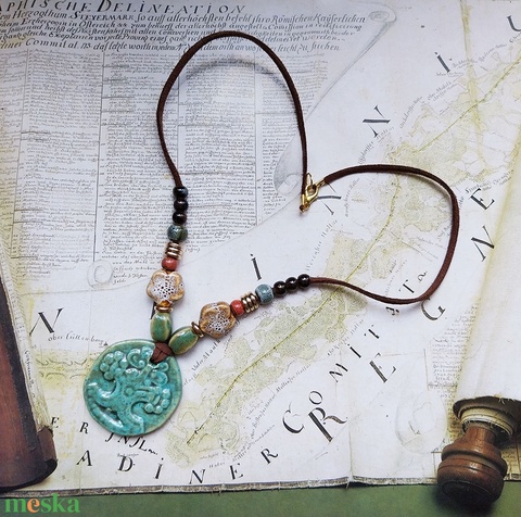 - Anyaga: kerámia medál, bőrszál, kerámiagyöngyök