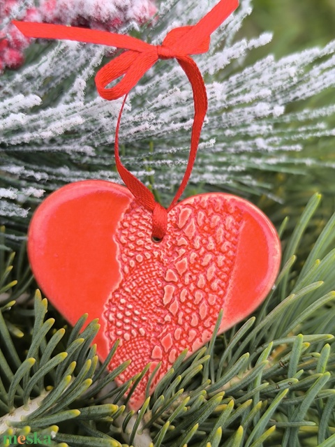 Kerámia karácsonyfadísz szivecske