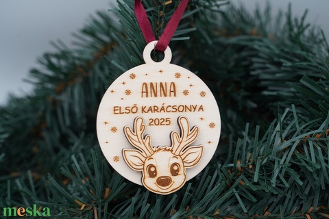 Névre szóló, 3D-s gravírozott, fa, karácsonyfadísz