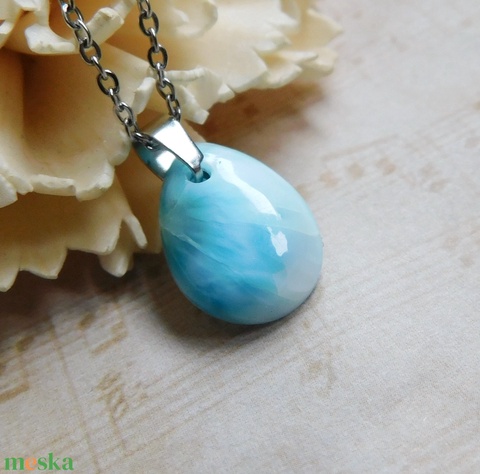 Orvosi acél szerelékre akasztottam ezt a különlegesen szép Larimár medált.