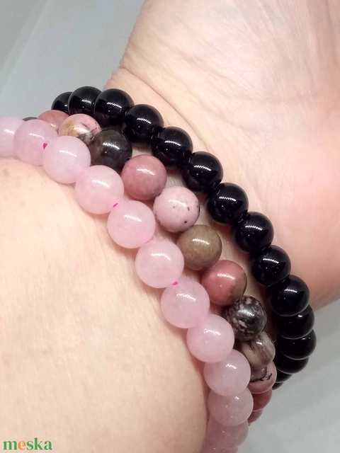 3 darabos ásvány karkötő szett, ónix achát - rózsakvarc - rodonit gyöngyökből