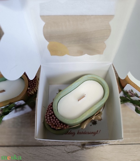 Kézzel öntött vaníliás illatgyertya díszdobozban – különleges ajándék karácsonyra, esküvőre vagy cégeknek