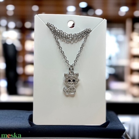 Strasszköves cica medál nemesacél kapcsos láncon 5639497