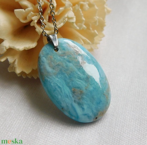 Orvosi acél szerelékre akasztottam ezt a különlegesen szép Larimár medált.
