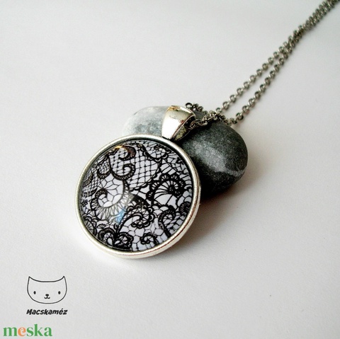 Klasszikus elegancia - Fekete csipkés üveglencsés nyaklánc