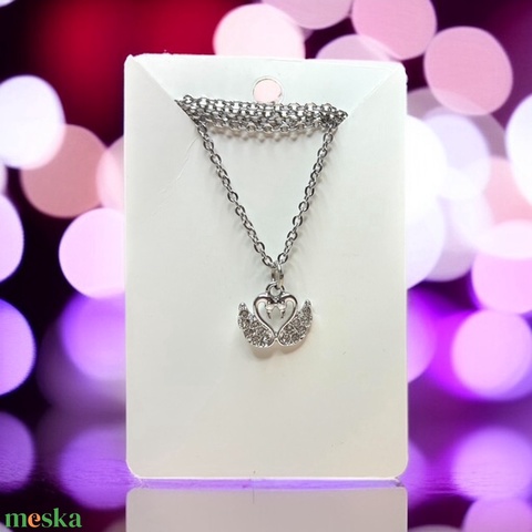 Strasszköves hattyú medál nemesacél kapcsos láncon