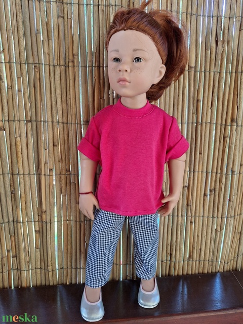 - Anyaga: pamutjersey, tyúkláb mintás szövet