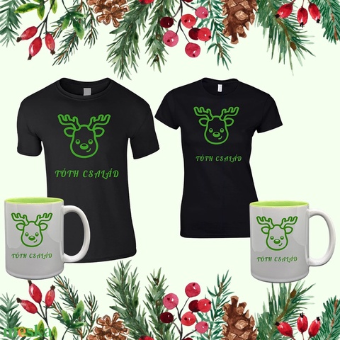 Rudolf Karácsonyi Póló és Bögre csomag egyedi névvel