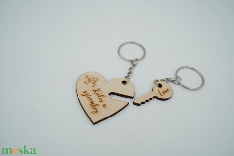 Szives-kulcsos páros fa kulcstartó
