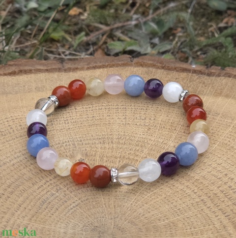 ❁A karkötő kristályai a 7 fő csakrát aktiválják, megtisztítják a diszharmonikus rezgésektől és feltöltik a tökéletes működéshez szükséges energiával.