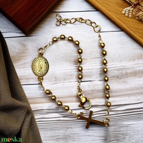 Nemesacél arany színű rózsafüzér jellegű karkötő 5639668