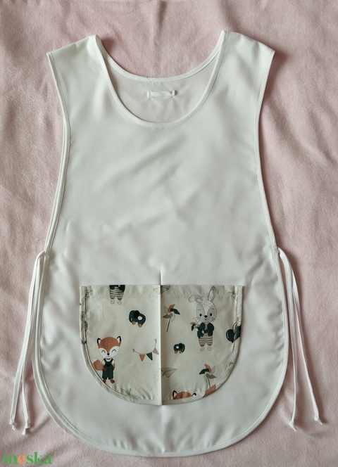Női fehér lapköpeny,mintás zsebbel