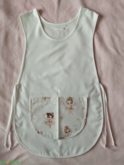 Női fehér lapköpeny,mintás zsebbel
