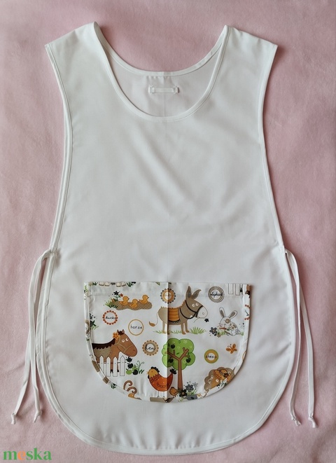 Női fehér lapköpeny,mintás zsebbel