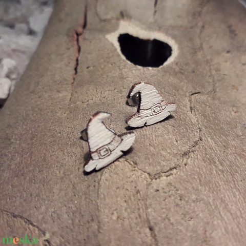 Nyírfából készült, lézergravírozott, boszorkány süveg pontfülbevaló