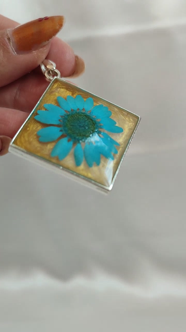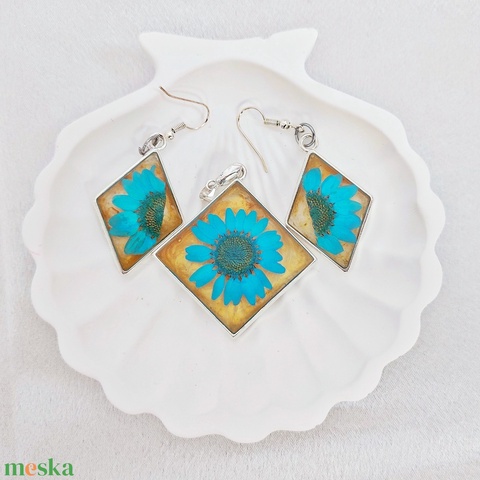 Sivatagi Virág – Türkiz Virágos Műgyanta Ékszerszett, Négyzet Forma