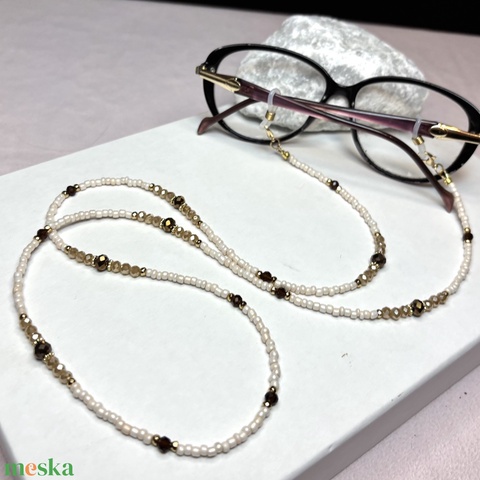 Elegáns nude barna bézs arany bronz színvilágú szemüveglánc csiszolt kristálygyöngyökből