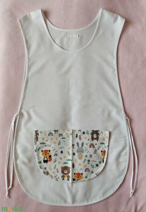 Női fehér lapköpeny,mintás zsebbel