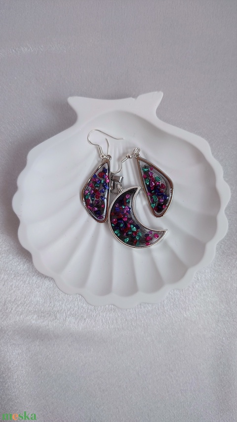 Holdfényes Csillogás - Egyedi Fülbevaló és Medál Szett, Színes Műgyanta Ékszer