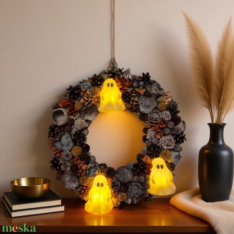 Világító halloween ajtódísz – „Vidám szellemek”