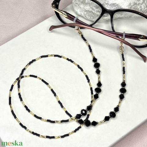 Elegáns fekete arany színű szemüveglánc csiszolt kristálygyöngyökből 5640277