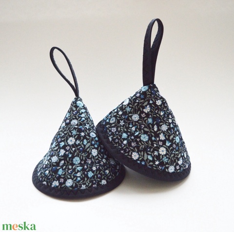 Edényfogó, fedőfogó, fülfogó - fekete alapon, kék tónusú virágos mintával, sötétszürke/fekete szegéllyel (2 db)